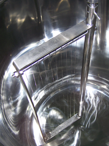 - Tina quesera de 120 litros de volumen total con agitador manual con herramientas intercambiables agitador y lira.